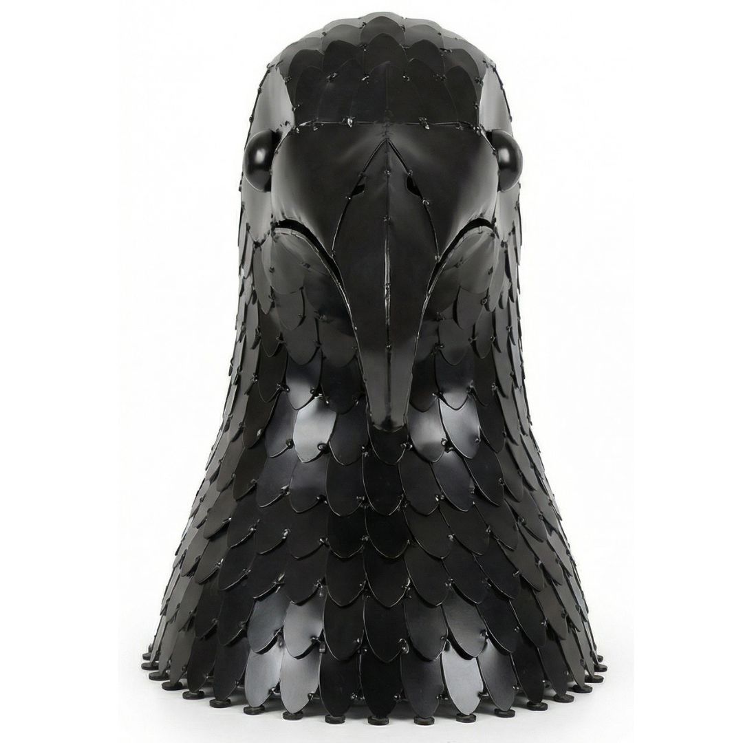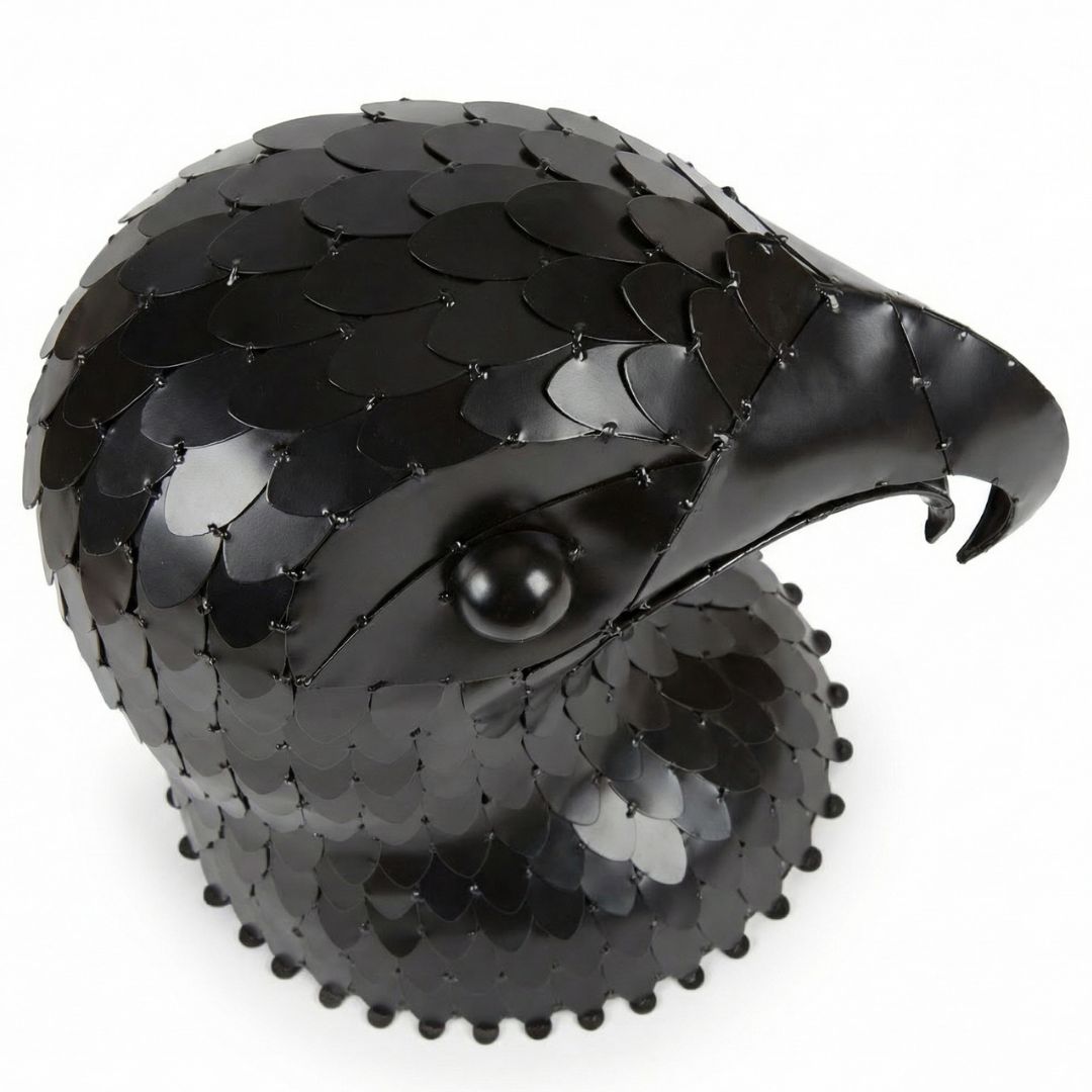 Elevate your décor with this striking Small Black Metal Eagle Head Sculpture, a bold fusion of craftsmanship and modern design. Made entirely from black metal, the piece features a stylized eagle head covered in meticulously layered, scale‑like metal plates that create a unique textured, armored look.